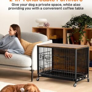 Customer Reviews: 3.8 3.8 out of 5 stars 16 ratings var dpAcrHasRegisteredArcLinkClickAction; P.when(‘A’, ‘ready’).execute(function(A) { if (dpAcrHasRegisteredArcLinkClickAction !== true) { dpAcrHasRegisteredArcLinkClickAction = true; A.declarative( ‘acrLink-click-metrics’, ‘click’, { “allowLinkDefault”: true }, function (event) { if (window.ue) { ue.count(“acrLinkClickCount”, (ue.count(“acrLinkClickCount”) || 0) + 1); } } ); } }); P.when(‘A’, ‘cf’).execute(function(A) { A.declarative(‘acrStarsLink-click-metrics’, ‘click’, { “allowLinkDefault” : true }, function(event){ if(window.ue) { ue.count(“acrStarsLinkWithPopoverClickCount”, (ue.count(“acrStarsLinkWithPopoverClickCount”) || 0) + 1); } }); }); [Entry Convenient with Dual-Entry System] The main door is 13″ long and 14.2″ high, and the side door is 9.5″ long and 14.2″ high. Offered in 27.2″ sizes to perfectly fit small dogs, each kennel boasts a dual-entry system, allowing pets the freedoms to enter and exit their haven from either side. This enhances convenience and comfort for pets of all sizes.[Cleaning Convenience Redefined] Each kennel, irrespective of size, features a removable slide-out tray designed to make cleaning effortless. This innovative solution ensures a hygienic living space for your pet, simplifying maintenance and maximizing quality time together.[Elegant and Functional Furniture] Not just a pet haven, but a stylish furniture piece, these kennels double as exquisite end tables. Blending seamlessly with your home decor, they elevate the aesthetic of any room while supporting up to 70 lbs, making them a practical addition to your living space.[Designed for Durability and Visibility] Constructed from robust particleboard and steel, these kennels are engineered to withstand the enthusiasm of chewers across all sizes, from large to small dogs. The airy metal enclosure ensures optimal ventilation and visibility, creating a secure and welcoming environment for your pet.[Smooth Mobility with Secure Positioning] Featuring 360-degree rotating wheels for effortless mobility, these kennels can be easily moved across different areas of your home. Lockable wheels on each unit enhance stability, ensuring the kennel remains stationary when desired and safe for your pet.[Quick Setup] Unpack a world of convenience with our dog cage’s straightforward, step-by-step assembly instructions. Say goodbye to complicated setups and hello to more tail-wagging moments! This isn’t just any crate—it’s a deluxe pad for your pooch, featuring handy hooks for organizing pet essentials, keeping your space neat and tidy. Plus, with complimentary gloves and tools included, you’ll have it ready in no time, safeguarding both your hands and your buddy’s new haven. Get ready to watch your furry friend strut into their stylish new spot with pride!