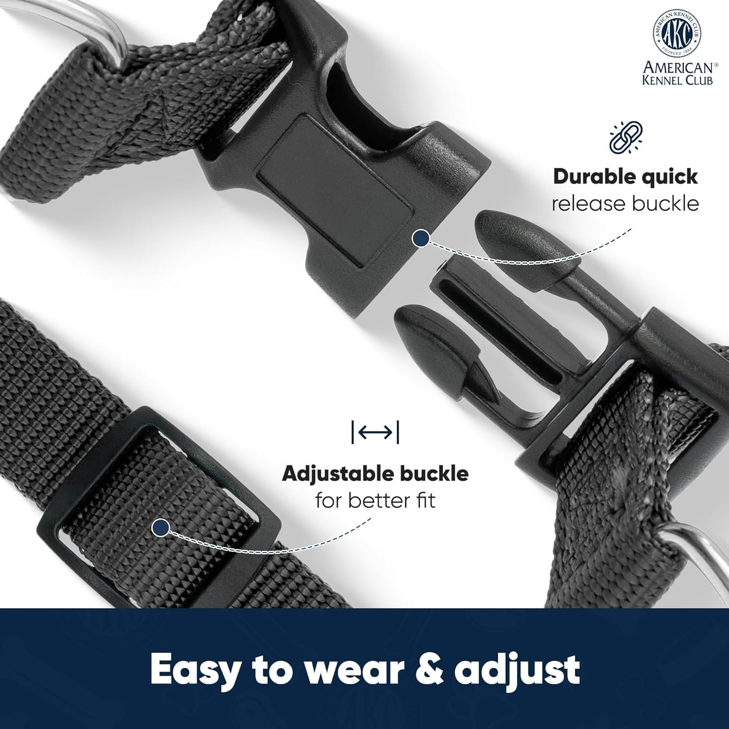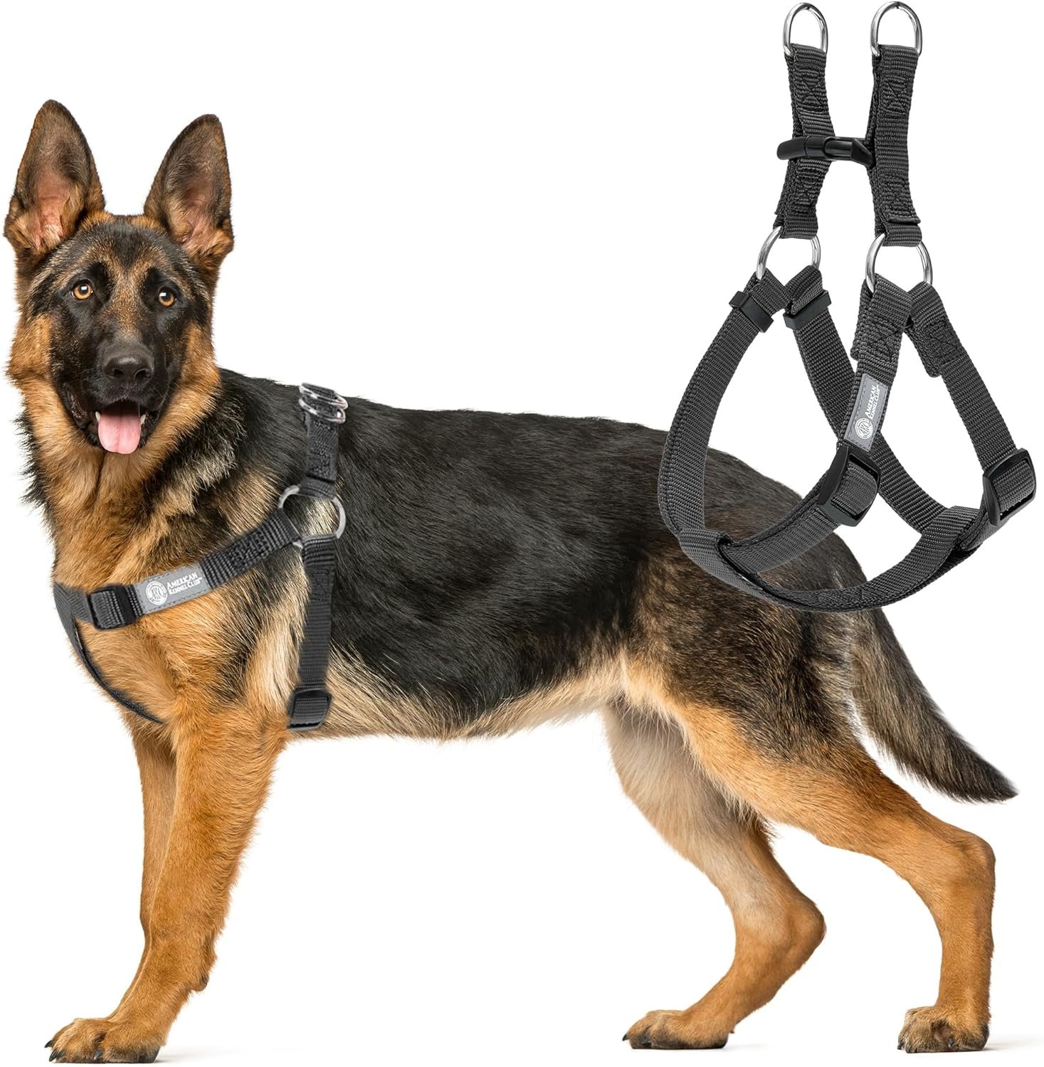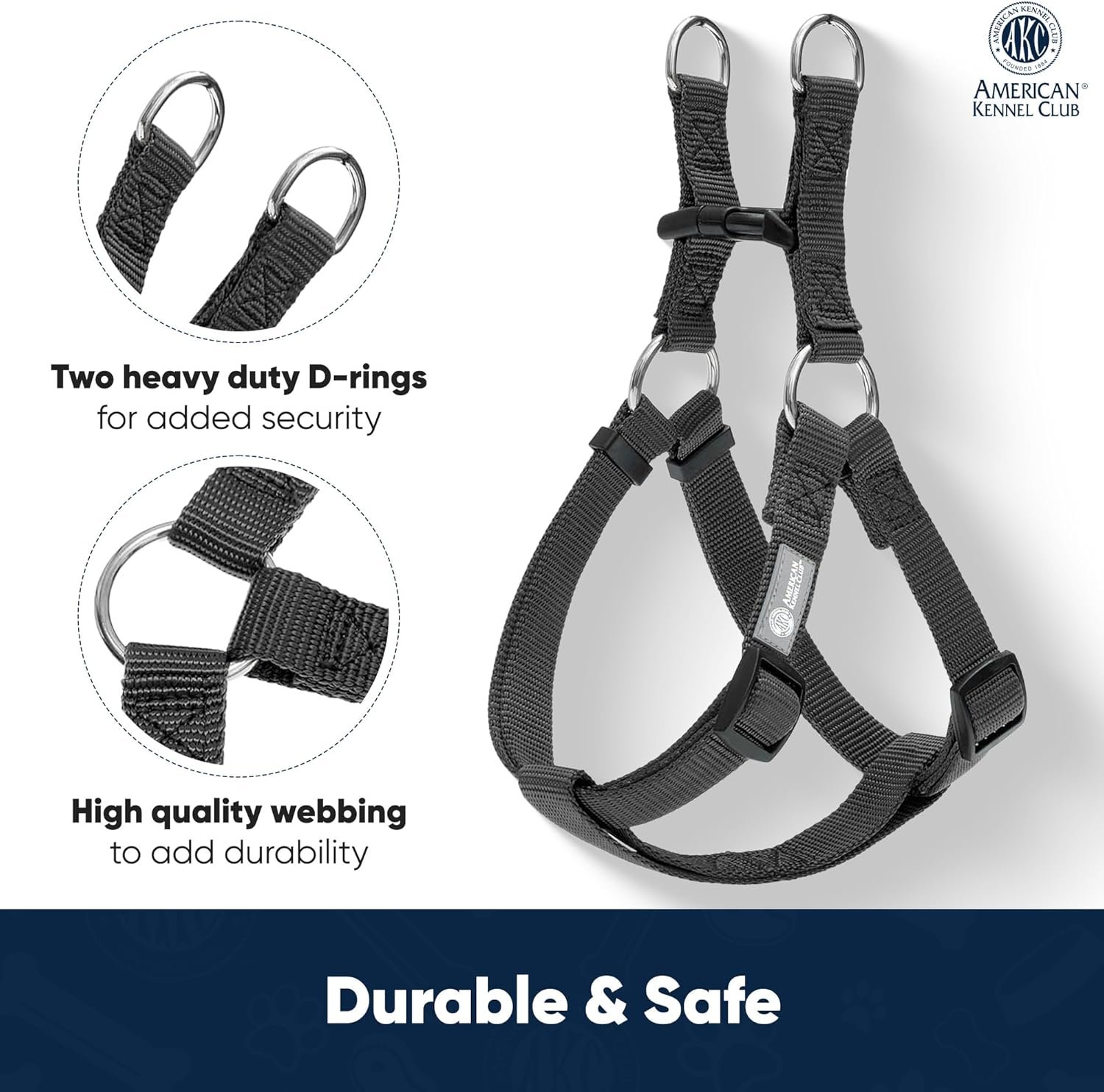 AKC Step-in Dog Harness – Adjustable Solid Color Vest with Dual D-Rings, No-Pull Comfort Fit for Small, Medium, Large Dogs – Black, Gray, Navy, Pink