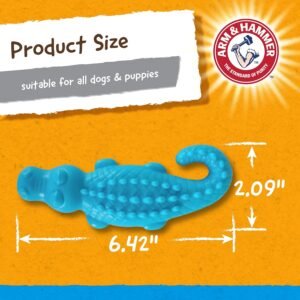 DOES YOUR PUP HAVE POWERFUL GATOR JAWS THAT DESTROY EVERYTHING? Give them a gator they can test their jaw strength on – the Arm & Hammer Gator Dental Chew Toy for Dogs is sturdy enough for tough chewers