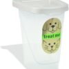 Customers find the dog treat jar attractive, well-made, and appreciate its tight rubber-silicone seal that keeps treats fresh. The jar is large enough for medium-sized dog treats and holds a whole bag, making it perfect for storage. While some customers report durability issues with the jar completely shattering into sharp fragments, others find it durable. The lid doesn’t sit flush with the jar.