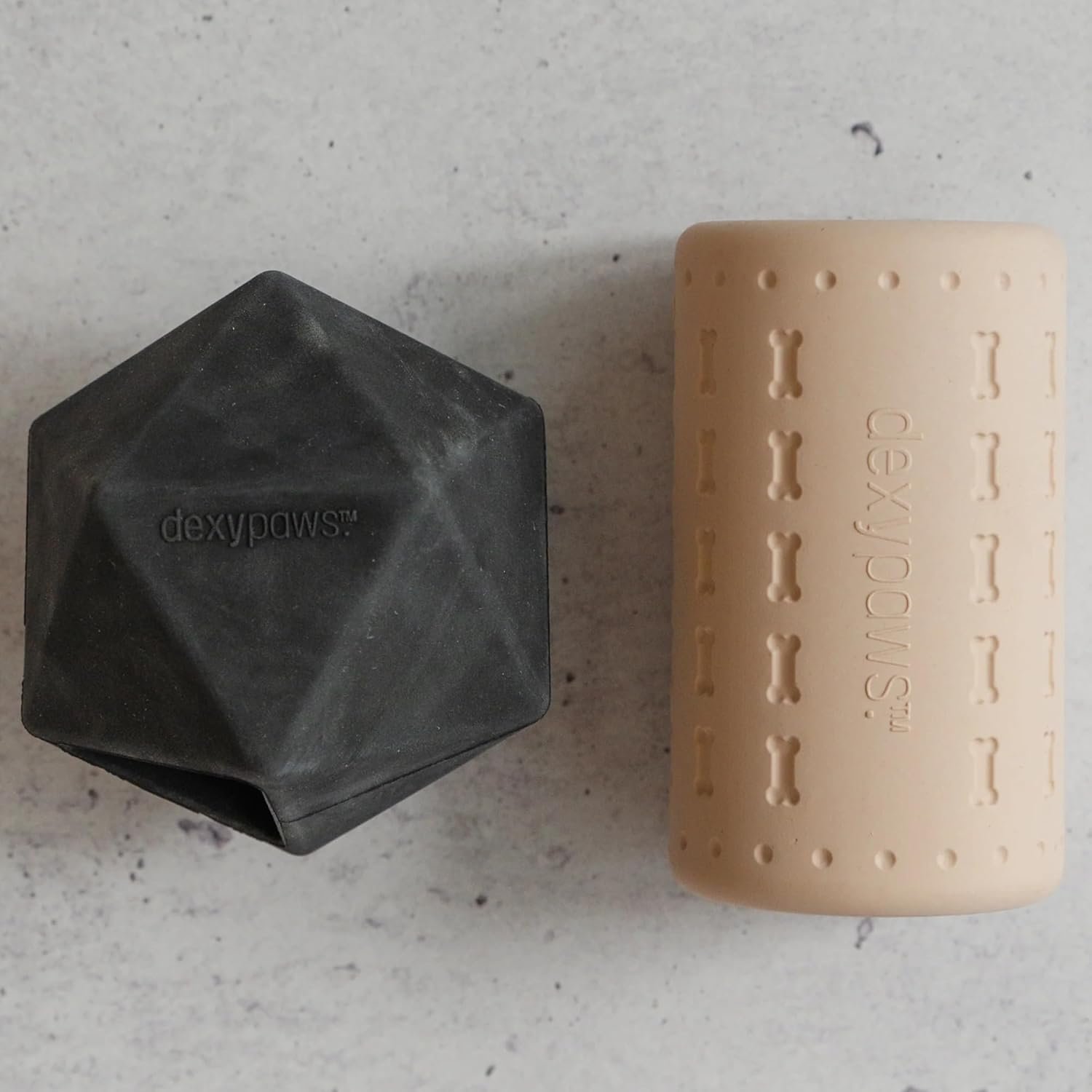 Dexypaws: Power Duo Set – Geometric Kong & Cylinder – Beige & Black – 2pc Dog Chew Toys, Treat Dispensing, Durable Rubber, Ridges & Grooves, Pet Play