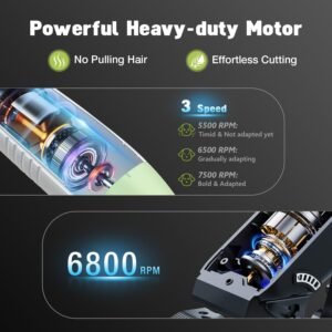 【Efficient, Low-Noise Design – Stress-Free Grooming】Equipped with a low-noise motor operating at just 55dB, keeping pets calm and relaxed. The 6800 RPM motor is optimized for thick coats, minimizing hair-pulling and reducing grooming time by 45%.