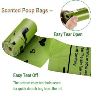【Fresh Scented Poop Bags】odor-control fresh scented puppy poo bags for all size of dogs, dog bags for poop also can be used for cat litter clean up, baby dirty diapers, food scraps, or car litter disposing.