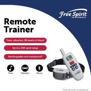 FreeSpirit Dog Training Collar with Remote – Waterproof – Rechargeable – With Tone, Vibration & Static – For Small & Large Dogs