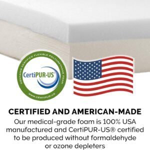 CERTIPUR-US: Our foam is 100% manufactured in the USA and independently tested to meet CertiPUR-US standards for emissions, content, and durability; made WITHOUT formaldehyde, phthalates, mercury, lead, and ozone depleters