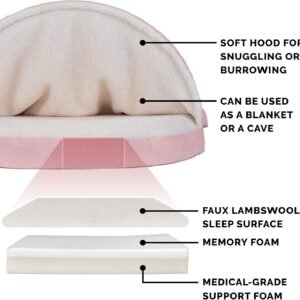 SLEEP SURFACE: The interior sleep surface is lined with cozy and insulating sherpa, while the blanket exterior features easy-care suede; both are gentle on noses and paws for enhanced snuggling and burrowing comfort