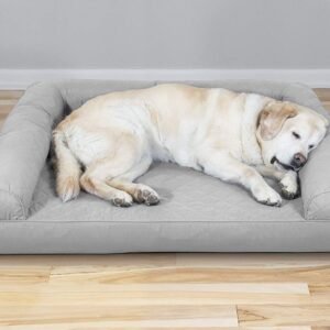 Perfect for pets young and old, the Furhaven Quilted Sofa-Style Dog Bed is designed to provide your loved one with maximum comfort for a good night’s rest. With a smooth, quilted sleeping surface your pet will be more snug than a bug in a rug! The medical-grade foam core includes a layered orthopedic foam core topped with gel-infused memory foam. Micro gel beads help keep the bed cooler while memory foam conforms to your pet’s shape providing superior support of joints and pressure points. Gel foam has cooling properties reducing the sleeping surface by 1 or 2 degrees, wicking heat away from your pet. The superior support provided by both foam cores will help your pet reach a deeper, more restorative rest for your pet’s health. These are the perfect dog beds for hot summer days. They’ll love the bolsters’ soft but supportive feel provided on three sides giving them a variety of cozy positions to snuggle into. The bolsters are a great pillow for your pet to lie their head on or, for pets that like to cozy into your couch, they can snuggle close to the sides for a sense of security and warmth. Whatever position your pooch likes to lay in, they’ll find nothing but comfort and sweet dreams! With the feel of a couch, your pet will love having their own space to curl into while you’ll love having your favorite spot on the couch back! No more unwanted pet fur and scratches on your furniture. It’s great for older pets who may be unable to jump on the couch and have had to lie on the floor. Easy to clean. Cover care: Remove from core before washing (see seam label for fabric care instructions). Foam care: Cooling gel foam is highly absorbent. Spot clean with mild soap or enzyme-based cleaning spray. Rinse but DO NOT SOAK OR SUBMERGE. Press out moisture with a dry towel and air dry. A fan may be used to speed drying. Do not wring or place in machine dryer. Dry completely before use. Not for unsupervised use by animals with destructive chewing behavior.