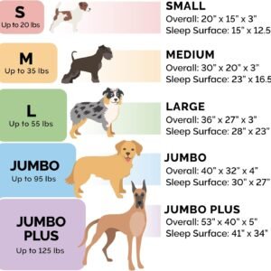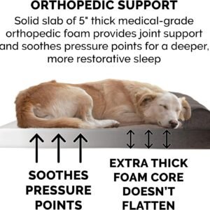 PRODUCT DETAILS: Orthopedic Dog Bed, Coffee; Jumbo Plus – 53″ x 40″ x 9.5″ (5″ Base Foam Height; Sleep Surface: Approx. 41″ x 34″)