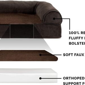 Finally, a solution for your arthritic pet’s pain! This Furhaven Sherpa & Chenille Sofa-Style Dog Bed has a soft, faux fleece sleep surface providing your pet comfort while the orthopedic (egg crate) foam base supports your dog’s joints and pressure points. The Jumbo Plus option, for larger breeds, features solid slab orthopedic foam for greater support and comfort. The sofa bed has three walls to give your pup a variety of positions to lay in while remaining comfortable. Your best friend deserves a good night’s rest and now, it’s possible. With their very own orthopedic pet bed, your loved one will have maximum comfort for a great night’s rest. Any position will do on this sofa bed! The squishy bolsters on three sides provide comfort for your pet to lay down in a variety of ways while always being provided the support they need. For example, your dog can lay on their tummy and use one of the bolsters as a pillow for a cozy night of sweet dreams. Cats love our sofa beds also! The bolsters provide cozy walls for your feline friend to snuggle into for their cat naps. This luxurious orthopedic pet couch provides a cozy spot for your companion to snuggle up in, leaving your favorite spot on the couch all for you! Easy to clean. Cover care: Remove from core before washing (see seam label for fabric care instructions). Foam care: Spot clean with mild soap; rinse. Blot, then air dry. Do not wring. Not for unsupervised use by animals with chewing behaviors.
