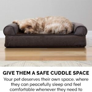 COMFORT AS PRIORITY: The sofa-style design creates a cozy and inviting space that promotes comfort and security; designed with supportive bolsters for dogs to rest their heads on for optimum lounging comfort