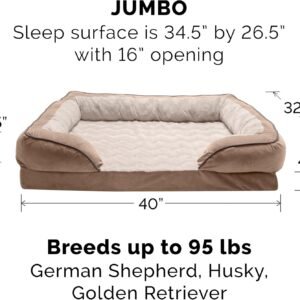 PRODUCT DETAILS: Brownstone; Jumbo, 44″ x 35″ x 10″ (4″ Foam; Sleep Surface: Approx. 27″ x 36″ with 17″ opening)