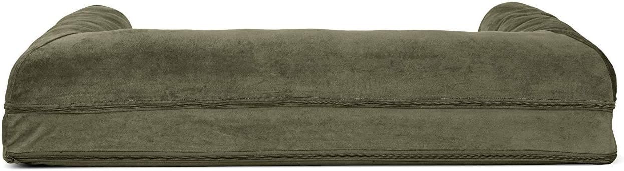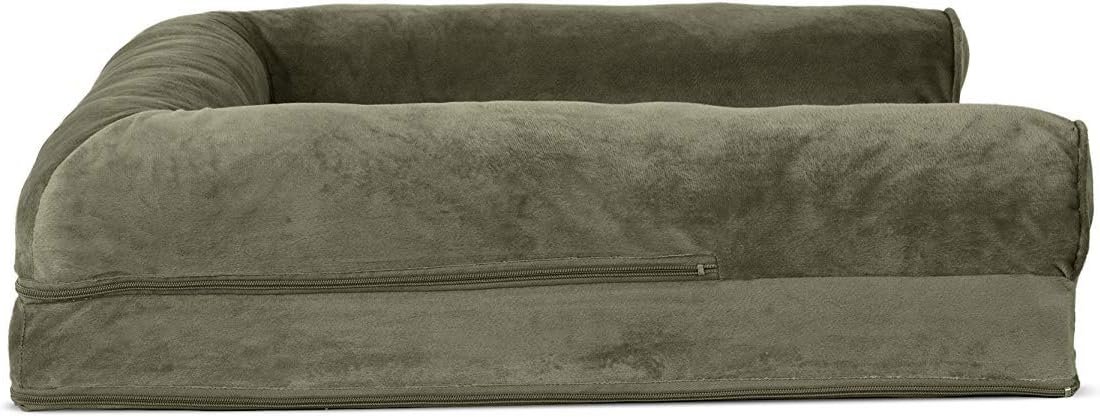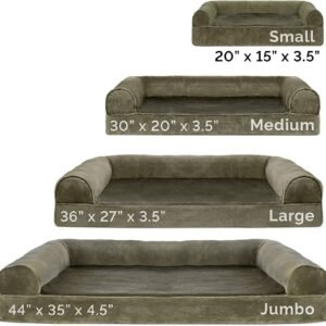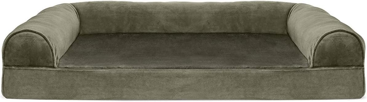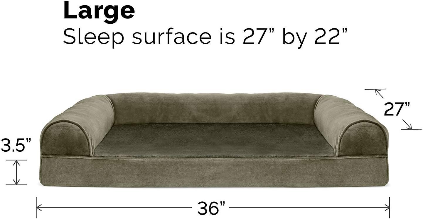Finally, a solution for your arthritic pet’s pain! This Furhaven Faux Fur & Velvet Sofa-Style Dog Bed has a soft, faux fur sleep surface providing your pet comfort while the orthopedic (egg crate) foam base supports your dog’s joints and pressure points. The Jumbo Plus option, for larger breeds, features solid slab orthopedic foam for greater support and comfort. Luxurious velvet gusset is dyed to match the faux fur sleep surface, creating a bed fit for a furry king or queen. The sofa bed has three walls to give your pup a variety of positions to lay in while remaining comfortable. Your best friend deserves a good night’s rest and now, it’s possible. With their very own orthopedic pet bed, your loved one will have maximum comfort for a great night’s rest. Any position will do on this sofa bed! The squishy bolsters on three sides provide comfort for your pet to lay down in a variety of ways while always being provided the support they need. For example, your dog can lay on their tummy and use one of the bolsters as a pillow for a cozy night of sweet dreams. Cats love our sofa beds also! The bolsters provide cozy walls for your feline friend to snuggle into for their cat naps. This luxurious orthopedic pet couch provides a cozy spot for your companion to snuggle up in, leaving your favorite spot on the couch all for you! Easy to clean. Cover care: Remove from core before washing (see seam label for fabric care instructions). Foam care: Spot clean with mild soap; rinse. Blot, then air dry. Do not wring. Not for unsupervised use by animals with chewing behaviors.