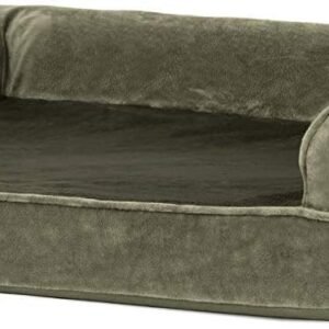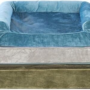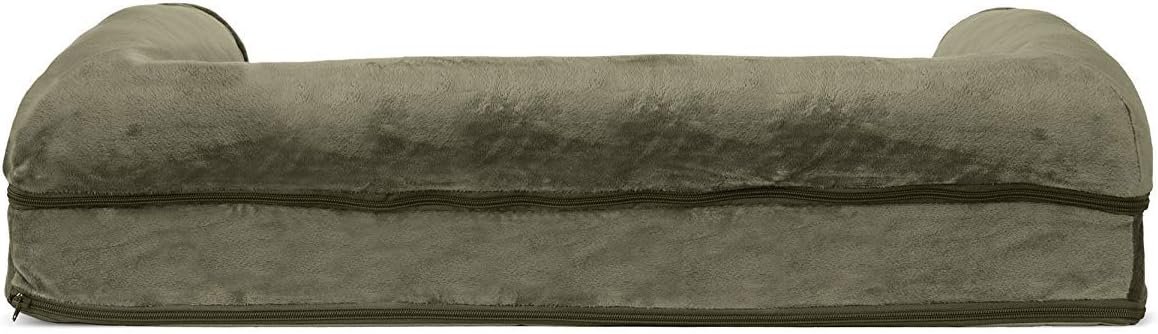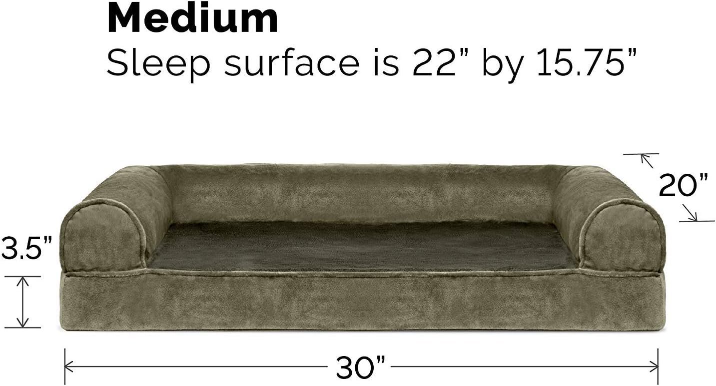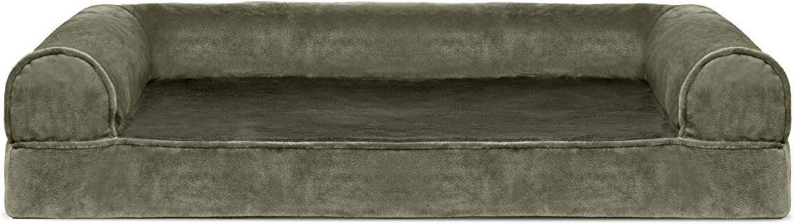 Finally, a solution for your arthritic pet’s pain! This Furhaven Faux Fur & Velvet Sofa-Style Dog Bed has a soft, faux fur sleep surface providing your pet comfort while the orthopedic (egg crate) foam base supports your dog’s joints and pressure points. The Jumbo Plus option, for larger breeds, features solid slab orthopedic foam for greater support and comfort. Luxurious velvet gusset is dyed to match the faux fur sleep surface, creating a bed fit for a furry king or queen. The sofa bed has three walls to give your pup a variety of positions to lay in while remaining comfortable. Your best friend deserves a good night’s rest and now, it’s possible. With their very own orthopedic pet bed, your loved one will have maximum comfort for a great night’s rest. Any position will do on this sofa bed! The squishy bolsters on three sides provide comfort for your pet to lay down in a variety of ways while always being provided the support they need. For example, your dog can lay on their tummy and use one of the bolsters as a pillow for a cozy night of sweet dreams. Cats love our sofa beds also! The bolsters provide cozy walls for your feline friend to snuggle into for their cat naps. This luxurious orthopedic pet couch provides a cozy spot for your companion to snuggle up in, leaving your favorite spot on the couch all for you! Easy to clean. Cover care: Remove from core before washing (see seam label for fabric care instructions). Foam care: Spot clean with mild soap; rinse. Blot, then air dry. Do not wring. Not for unsupervised use by animals with chewing behaviors.