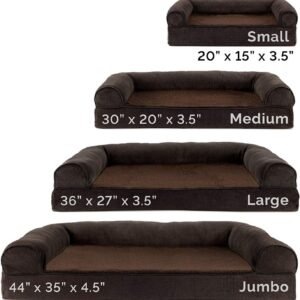 Finally, a solution for your arthritic pet’s pain! This Furhaven Sherpa & Chenille Sofa-Style Dog Bed has a soft, faux fleece sleep surface providing your pet comfort while the orthopedic (egg crate) foam base supports your dog’s joints and pressure points. The Jumbo Plus option, for larger breeds, features solid slab orthopedic foam for greater support and comfort. The sofa bed has three walls to give your pup a variety of positions to lay in while remaining comfortable. Your best friend deserves a good night’s rest and now, it’s possible. With their very own orthopedic pet bed, your loved one will have maximum comfort for a great night’s rest. Any position will do on this sofa bed! The squishy bolsters on three sides provide comfort for your pet to lay down in a variety of ways while always being provided the support they need. For example, your dog can lay on their tummy and use one of the bolsters as a pillow for a cozy night of sweet dreams. Cats love our sofa beds also! The bolsters provide cozy walls for your feline friend to snuggle into for their cat naps. This luxurious orthopedic pet couch provides a cozy spot for your companion to snuggle up in, leaving your favorite spot on the couch all for you! Easy to clean. Cover care: Remove from core before washing (see seam label for fabric care instructions). Foam care: Spot clean with mild soap; rinse. Blot, then air dry. Do not wring. Not for unsupervised use by animals with chewing behaviors.