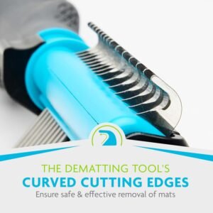 2-IN-1 DEMATTING TOOL WITH BUILT-IN FINISHING COMB: Easily removes mats and tangles on dogs with curly, long, silky and wiry coats.