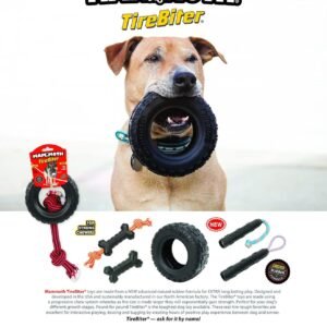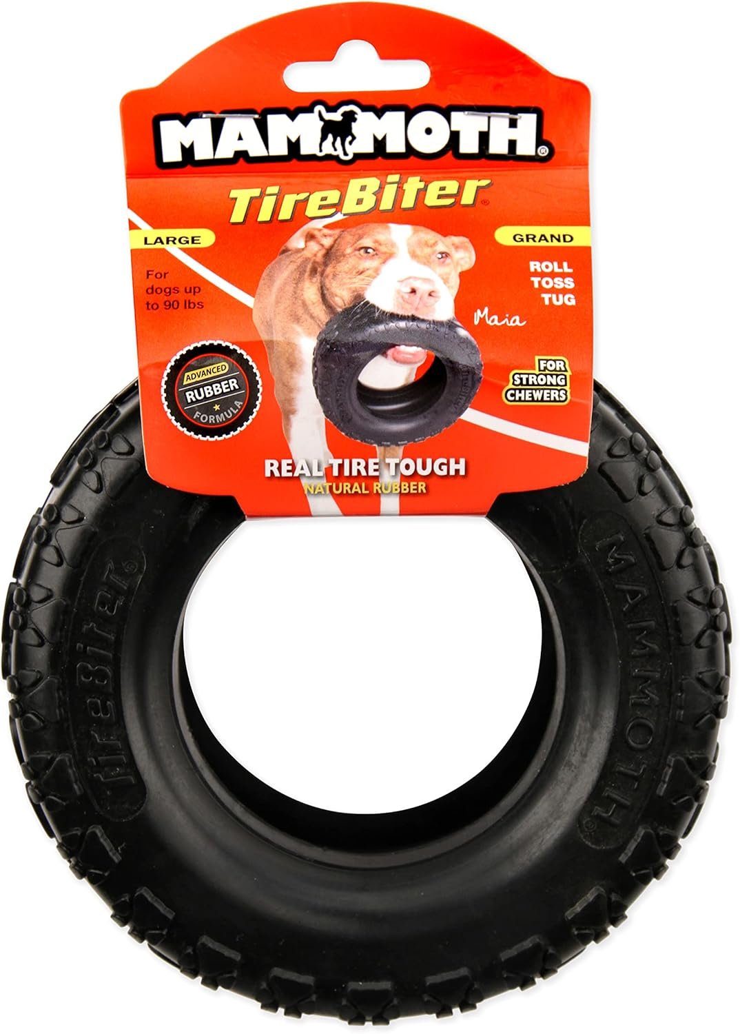REAL-TIRE TOUGH: These strong dog toys are ideal dog toys for extreme chewers. Dog toys in the TireBiterII range are made in North America from an advanced natural rubber formula for extra long lasting play. DURABLE DOG CHEW TOY: This tire shape rubber dog toy has a rugged textured surface for better grip. It is ideal for interactive playing and tossing, but will also keep your pup entertained during solo play. INTERACTIVE FUN: Tough, durable and perfect for lengthy playtimes, this is a tough toy for dogs that love tossing, fetching and playing. It’s also strong enough for games of tug of war with dogs that love to pull! LARGE DOG TOY: Great for large dogs, this is a Large 6-Inch rubber toy for dogs weighing 50-80lbs. We recommend choosing smaller dog toys for small or medium breed dogs. MAMMOTH PET PRODUCTS: Your pets deserve the best! Mammoth Pet Products has been a leading innovator and manufacturer of premium dog toys for all breeds and sizes since 1995.