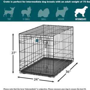 MidWest Homes for Pets Intermediate LifeStages Single Door 36-Inch Folding Dog Crate, Enhanced Security, Includes Leak-Proof Pan, Divider Panel, Handle, Rubber Feet