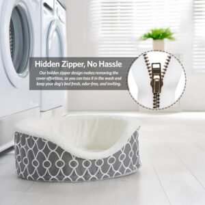Customers find the pet bed comfortable, cozy, and appreciate its super plush fabric and firm sides. The bed is easy to remove and wash, with one customer noting it can be put in the dryer on low setting. While some customers find it the perfect size, others mention the sizing is misleading. The durability receives mixed feedback, with some finding it durable while others describe it as flimsy.