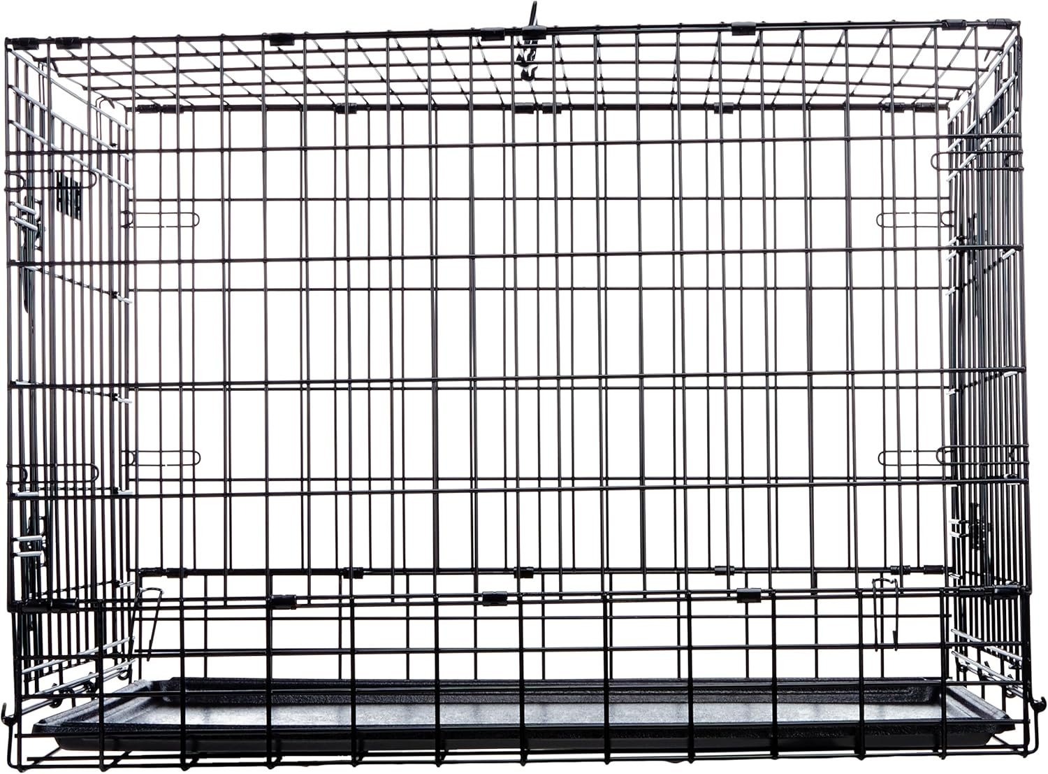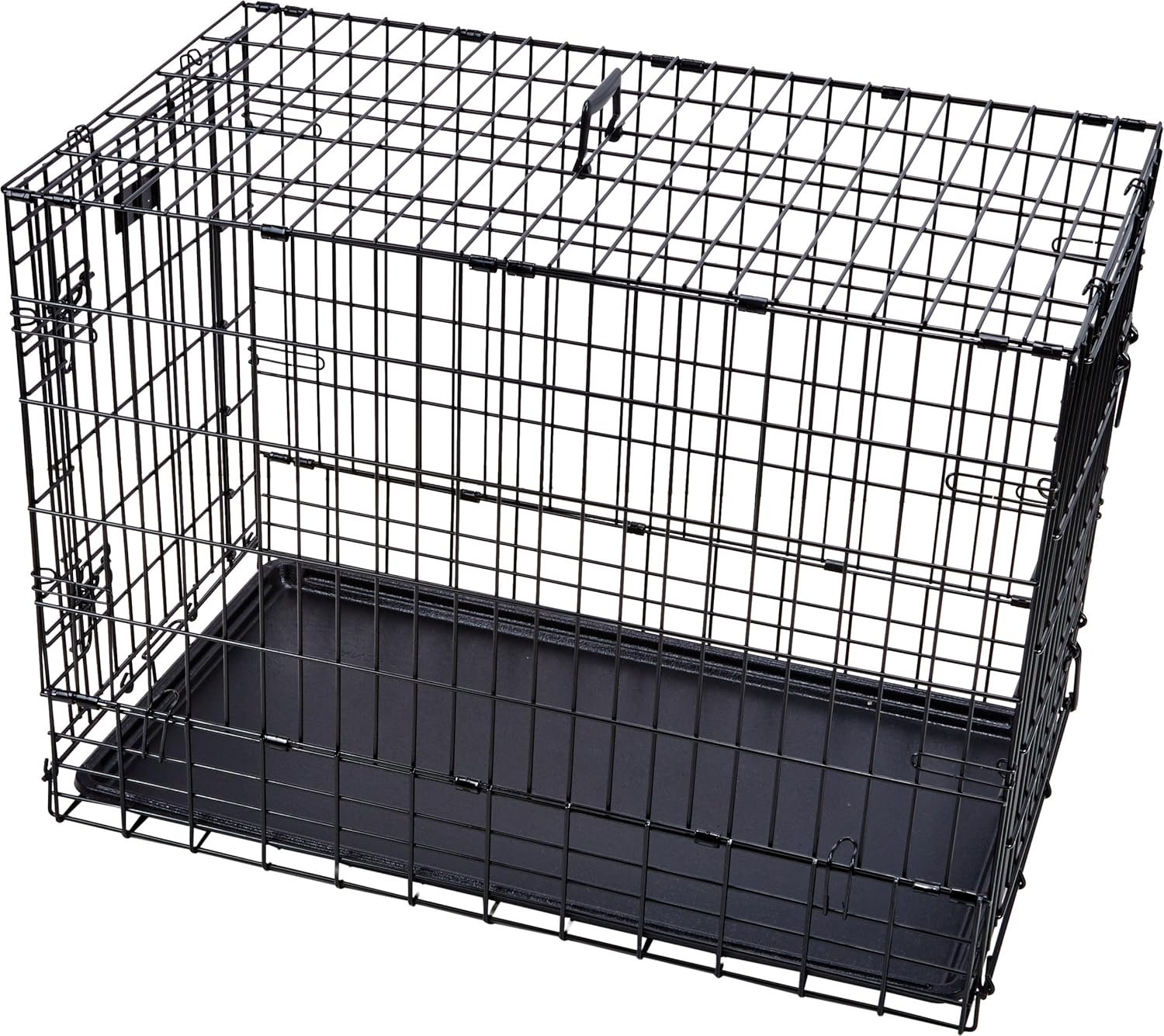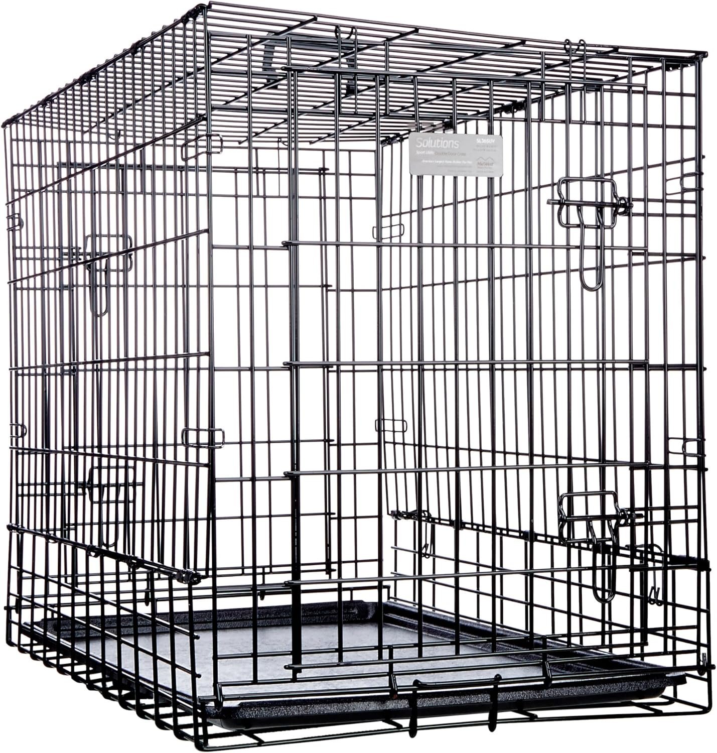 Built for Travel: Includes two secure slide-bolt latches per door, a leak-proof plastic pan, rust-resistant black e-coat finish, and a carrying handle for convenience