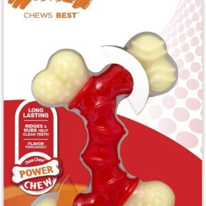 The funky and fun Power Chew Double Bone was crafted to entertain your powerful chewer! Made with tough nylon, this bone will prove to be a long-lasting, durable dog toy. The irresistible flavor of this bacon dog chew toy will keep your best fur friend entertained for hours, helping to discourage destructive chewing habits. This toy features action ridges and nubs to change up and excite your dog’s chewing sessions. Plus, the textures help clean teeth as dogs chew! Its unique design allows for easy chewing on any side and offers four bone tips for an easier grip. Reward your dog with this fun and delicious chew toy!