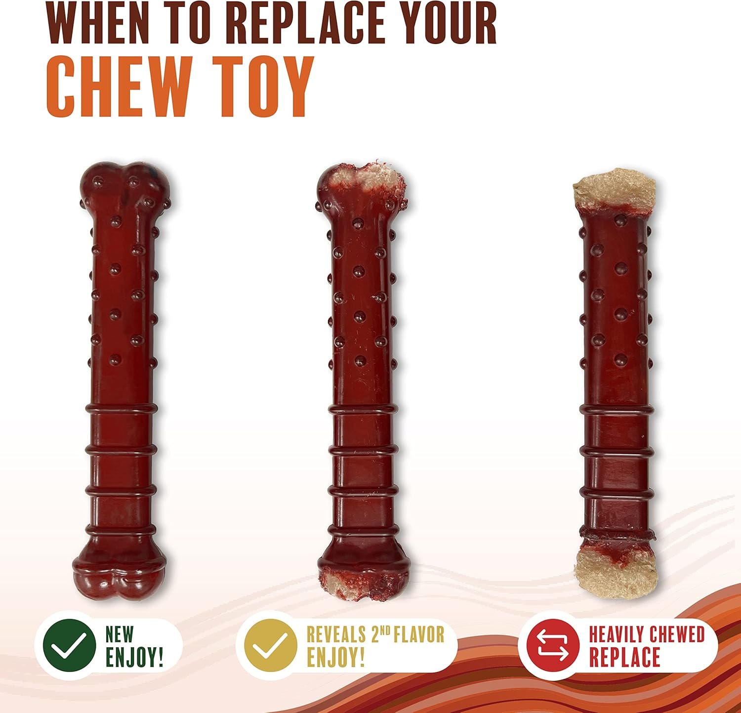 TASTE THE BASTE – We innovated an exclusive basting technique that adds a second flavor on top of an already delicious dog chew toy