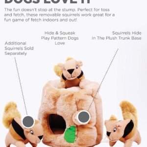 Product 1: HIDE & SQUEAK FUN: The Hide A Squirrel dog puzzle is an easy way to get your furry friends engaged for hours of fun! Just fill the tree trunk with 3 stuffed squirrels, toss it, and let your dog’s natural hunting instincts kick in!