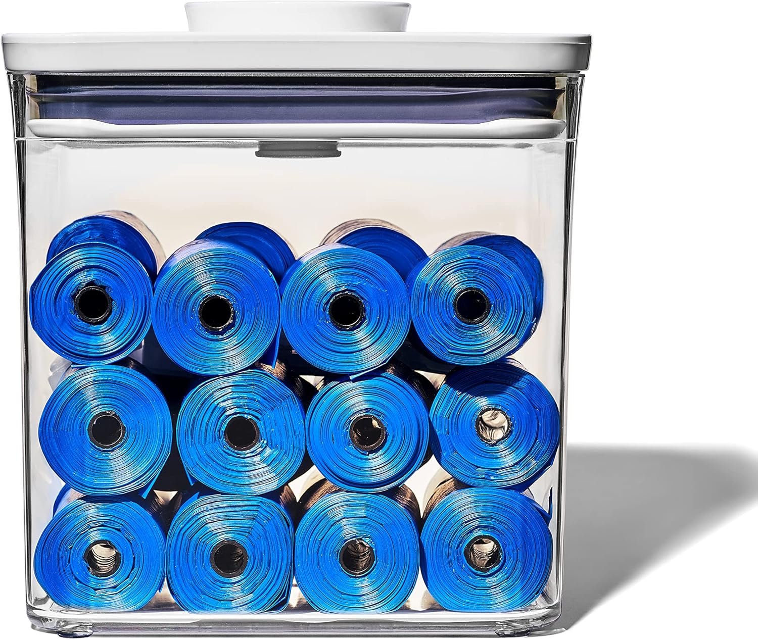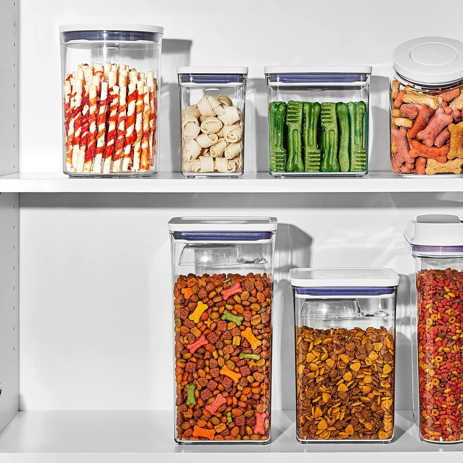 The OXO 2.8-Qt Pet POP Container is the perfect shape for all your pet’s storage needs. It can hold up to 3 pounds of dog food or 2 pounds of cat food; it’s also well-sized for dental sticks, biscuits, tennis balls and other small toys. If you’re using it to store food, take comfort knowing that it has the classic POP lid, which instantly creates an airtight seal (to keep pests and moisture out) and can be released and opened with just one hand. For best results, always use the button to open and close. Do not carry POP Containers by the lid. Dishwasher safe.