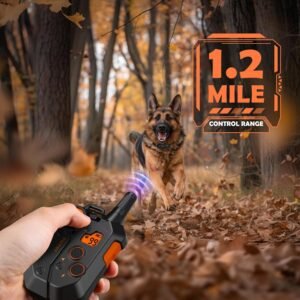 Range of 1.2 miles, IPX7 water resistant. Training indoors and outdoors easily and freely, even for hunting with close-working dogs, without worrying about malfunction in water