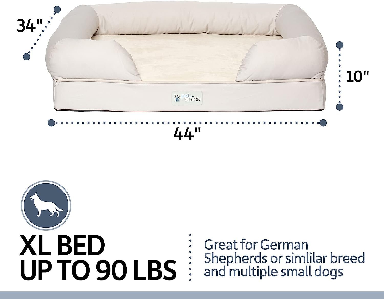 PetFusion Extra Large Dog Bed w/ Solid 4″ Memory Foam, Waterproof Liner, & YKK Premium Zippers. [Brown, 44x34x10″ ), X-Large (44×34″), Sandstone