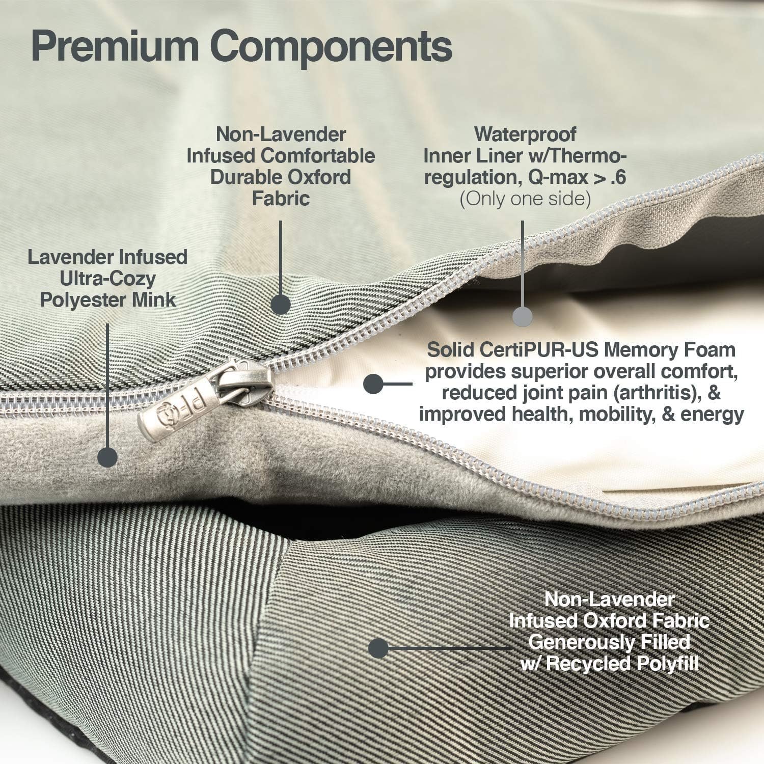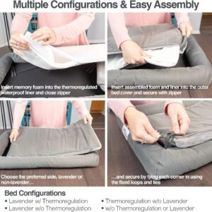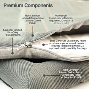 PetFusion Lavender-Infused Dog Bed w/Cooling | Solid Certi-PUR-US Orthopedic Memory Foam | Anti-Anxiety Crate Mat Calming & Soothing | All-Season Temperature Control Cooling Mat | 1 Year Warr.,Grey