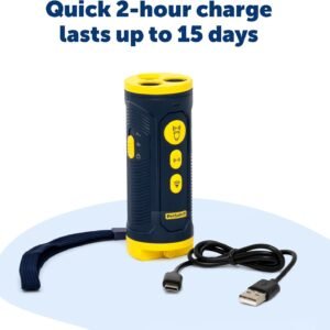 Don’t let bad behavior break the bond between you and your dog; use a gentle, contact-free correction with the Collarless Trainer. The handheld device emits a high-pitched sound only your dog can hear, capturing their attention and allowing you to discourage unwanted behavior like barking, digging and jumping with the push of a button. The ultrasonic training tool has four working modes including tone, ultrasonic, ultrasonic with a flashing light, and flashlight. It also has two frequencies to reinforce training with different sound patterns. The rechargeable battery lasts for up to 15 days on a single two-hour charge. With a light, ergonomic design and a wrist strap for convenience, the Collarless Trainer is easy to carry on long walks or attach to a belt.
