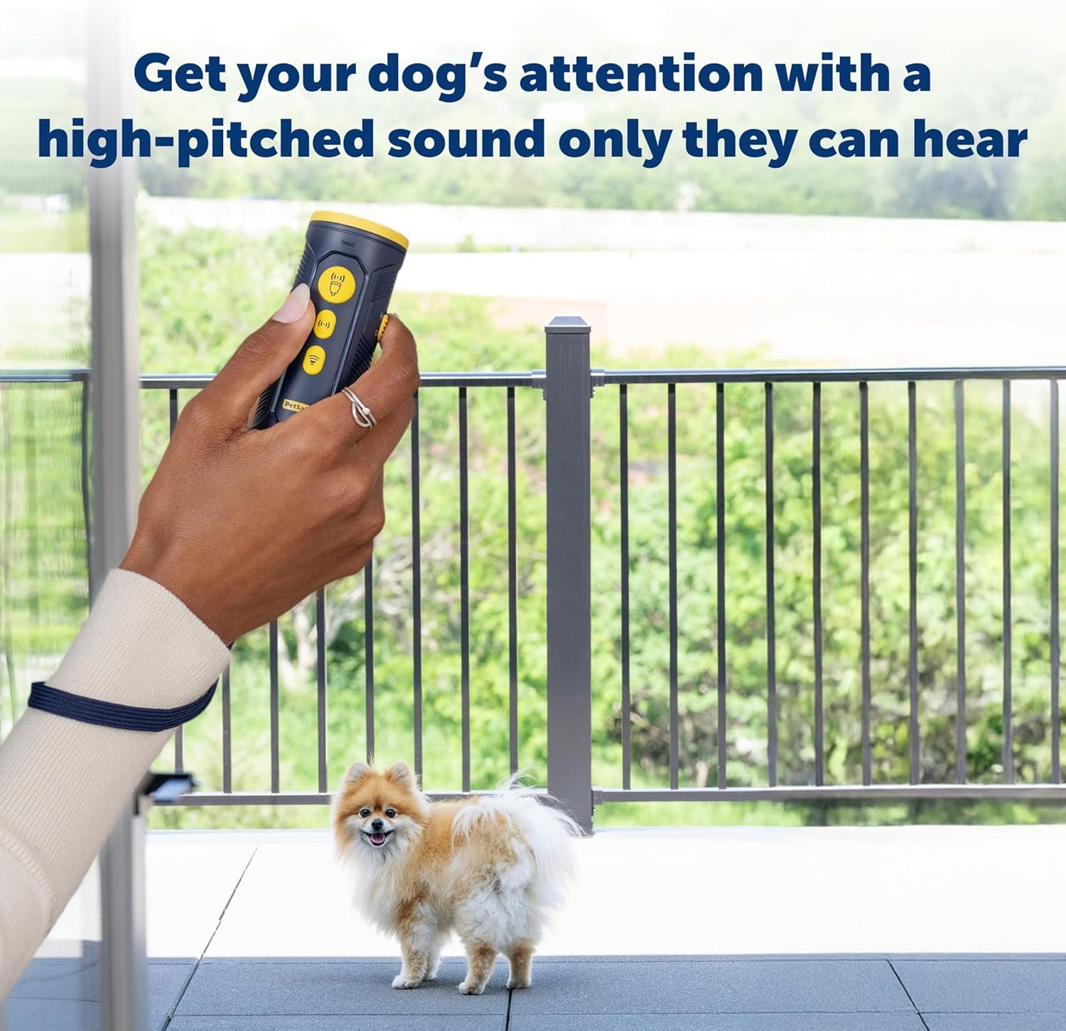 PetSafe Collarless Trainer – Ultrasonic Bark Deterrent – Handheld Anti Bark Device – High-pitched Sound, Flashing Light and Variable Tone – Rechargeable Battery – Flashlight – Wrist Strap