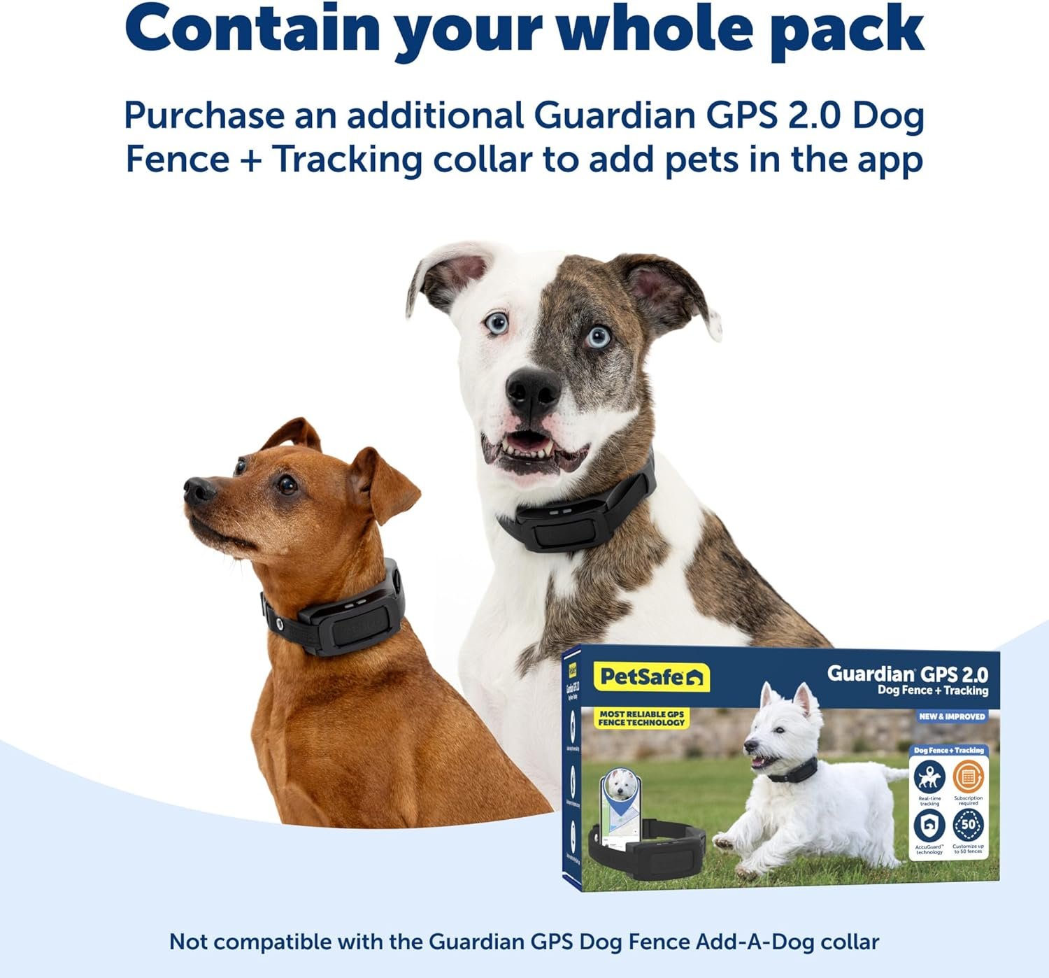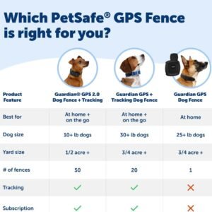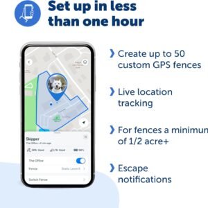 Get peace of mind about your dogs safety and location with the most advanced wireless GPS dog fence that includes real-time tracking capability. No buried wires, no complicated installationjust seamless, reliable containment wherever you go. The lightweight collar is 50% smaller and fits 98% of dog breeds* comfortably and securely, making it a good choice for both large and small dogs. AccuGuard technology is enhanced with dual-frequency GPS, AI-driven motion detection, and tracking for reliable fences in yards as small as acre. The intuitive My PetSafe app makes it easy to create and store up to 50 custom fences for home, travel, or new locations, giving your dog freedom while ensuring their safety. Cellular service is required for push notifications and tracking to function properly, but GPS fences will remain active at all times. *Designed to accommodate the average neck sizes of 98% of recognized dog breeds. Based on available data. Individual fit may vary.