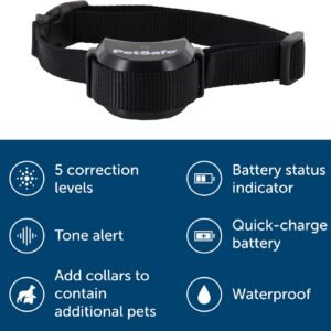 PetSafe Stay & Play Pet Fence Wireless, Dog Fence Collar Rechargeable Receiver Collar, Waterproof Design, Compatible with All PetSafe Wireless Fences, Invisible Wireless System (Black)