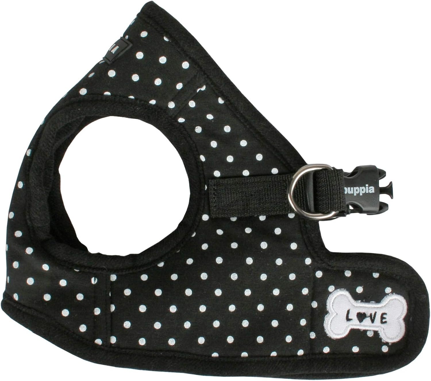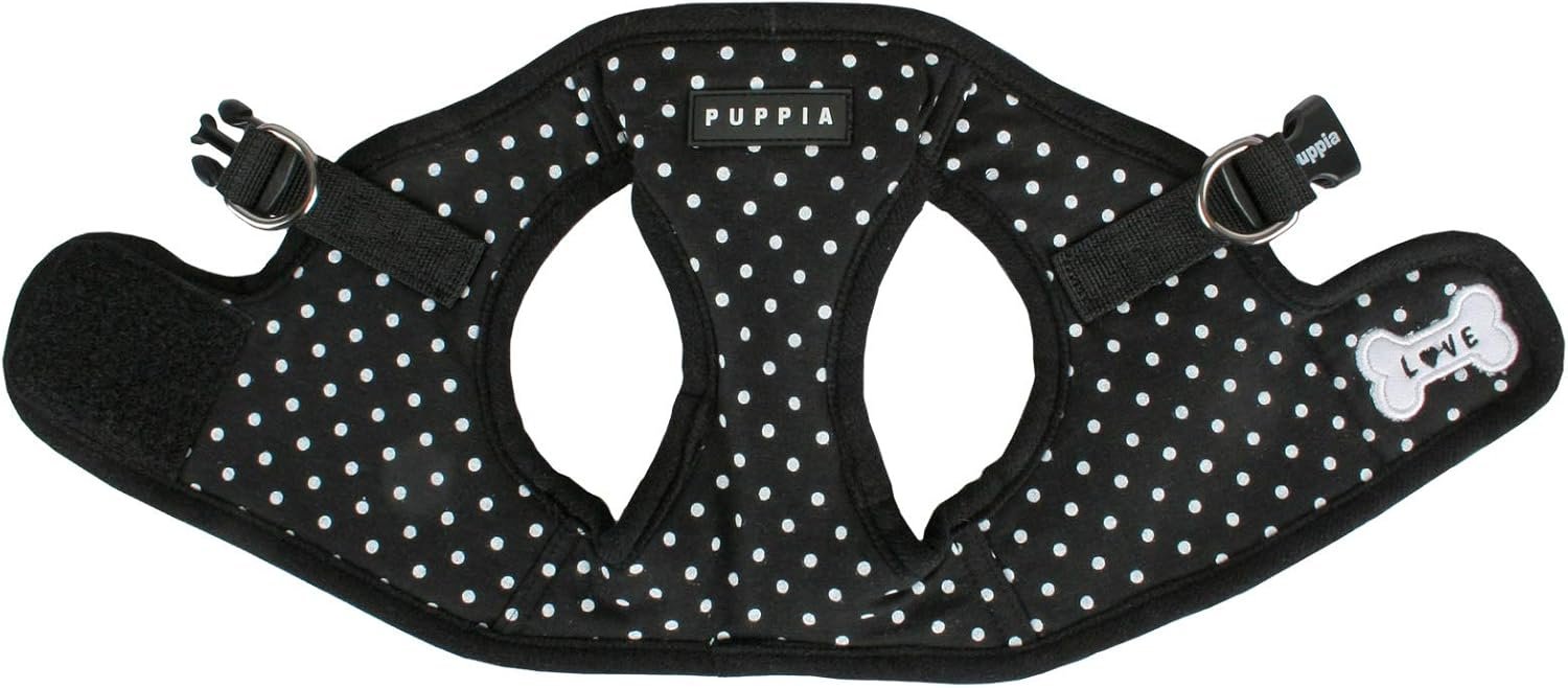 The Dotty Vest Harness B is a step-in perfect for the Spring/Summer season. It features a dotted pattern and solid schemed. It has hook and loop closure with a quick-release buckle and Puppia’s rubber label on the chest. Available in Pink, Sky Blue, and Black in sizes ranging from Small to Large.