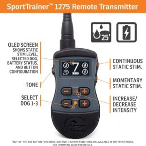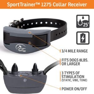 E-collar that features 3/4 mile range (1320 yards) and can be used to train 6 dogs with the same handheld remote with purchase of additional Add-A-Dog Collars (SDR-A); Collar Receiver fits dogs 8 pounds or larger with neck sizes 5″ – 22″ Handheld Transmitter features an easy-to-read OLED screen where you can view the selected dog, static level, and mode, as well as battery status Both the Handheld Transmitter and Collar Receiver feature our DryTek technology, making them waterproof and submersible to 25 feet Rechargeable lithium-ion batteries last 40 – 60 hours in the Remote Transmitter and 140 – 160 hours in the Collar Receiver per charge; they both feature a low battery indicator and can be charged at the same time using the included split-end charger Handheld Transmitter button functions can be customized; Detailed operating guide, training DVD, and a locally based Customer Care Center, reachable at 844-209-4636, provide support when you need it By designing our products in the field, with heat, cold, rain, snow, dust, mud, and wind in mind, SportDOG Brand has become one of the most recognized brands in the electronic tracking and training categories, making the promise to create “Gear The Way You’d Design It”