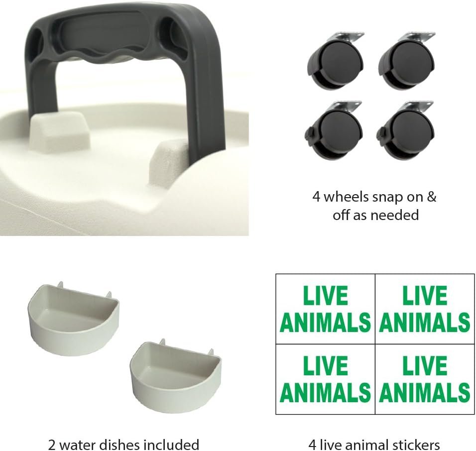 Iata airline approved. 2 dishes, 4 live animal stickers, metal bolts and nuts included