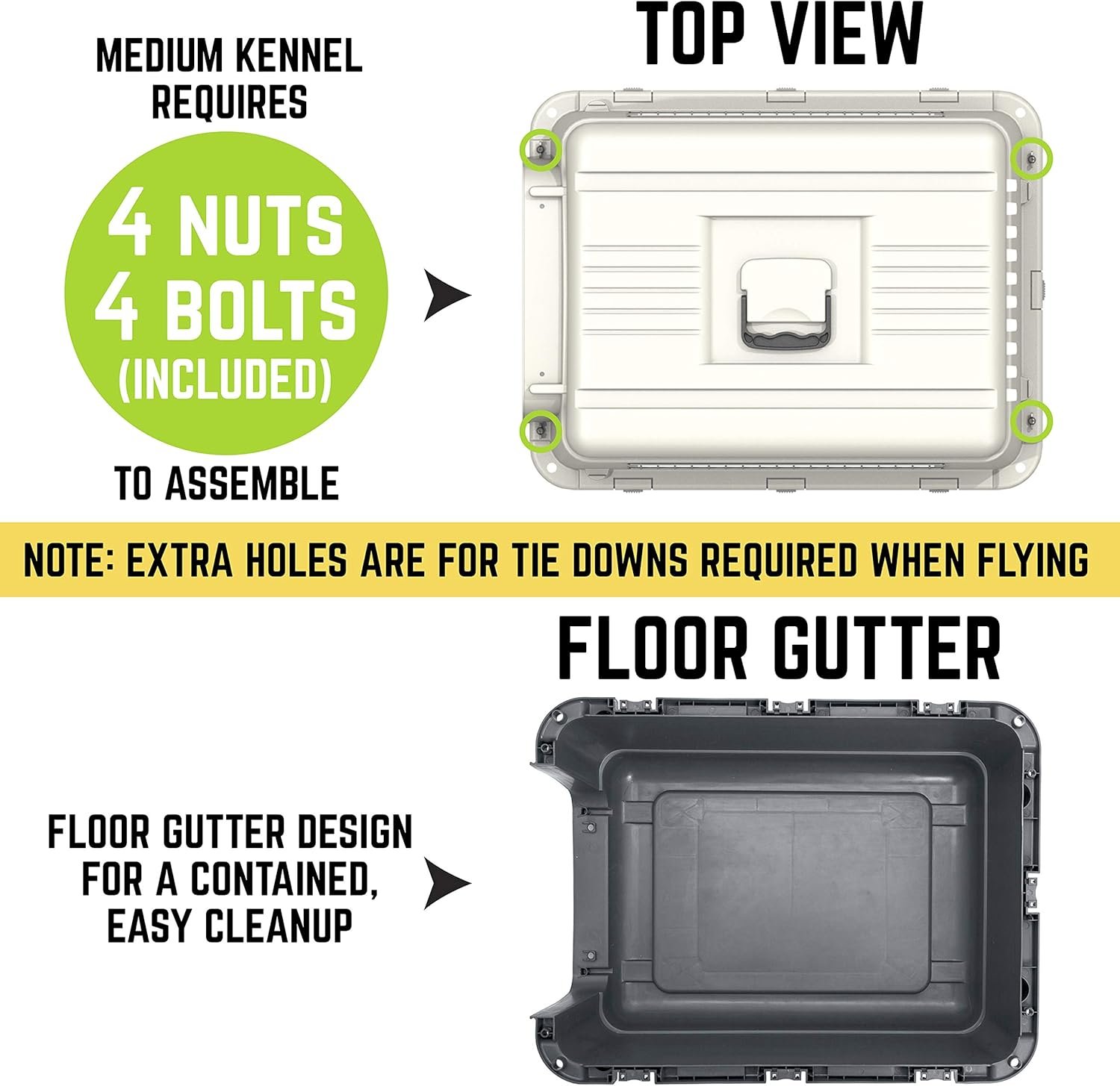 This is a plastic kennel designed for a lifetime of use. Our plastic crate will be your “go to” everyday home crate and Travel kennel. Please head to http: //SportPet/kennel sizing for help sizing your dog and to ensure you buy the correct size kennel. We also had airline travel in mind when designing this kennel. We include everything you need should you chose to ever fly with your dog. Check out our VIDEO here on this page for a quick tour of kennel features. Crate/ kennel assembly is fast and easy. Locking snaps hold the kennel halves together; additional included metal hardware locks the kennel together giving you peace of mind that your crate will make it safe and secure. Some dogs chew their escape through plastic ventilation holes. We use metal slats to mitigate the chewing problem and keep your pet safe. Accident moat pulls spills away from your pet’s body, out to the edges of the kennel strong metal kennel door with a smooth, easy-to-grasp latch thick impact resistant poly shell can take a wallop and keep on going pet parents should check with their airline before a trip. Airline and cargo carrier rules vary between countries and airlines. Pet crating and kennel shipment rules do change regularly, so be sure to check with proper authority about Pet shipments, Reds, and pet certifications and immunizations before your pet’s travel date. Limit kennel Time, don’t park under the sun, keep pet in ventilated areas with temperature control and air movement. For pets and intended use only. Questions? Please contact our customer service at info@sportpet. Net