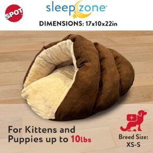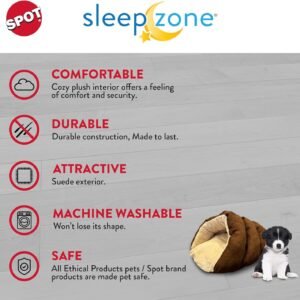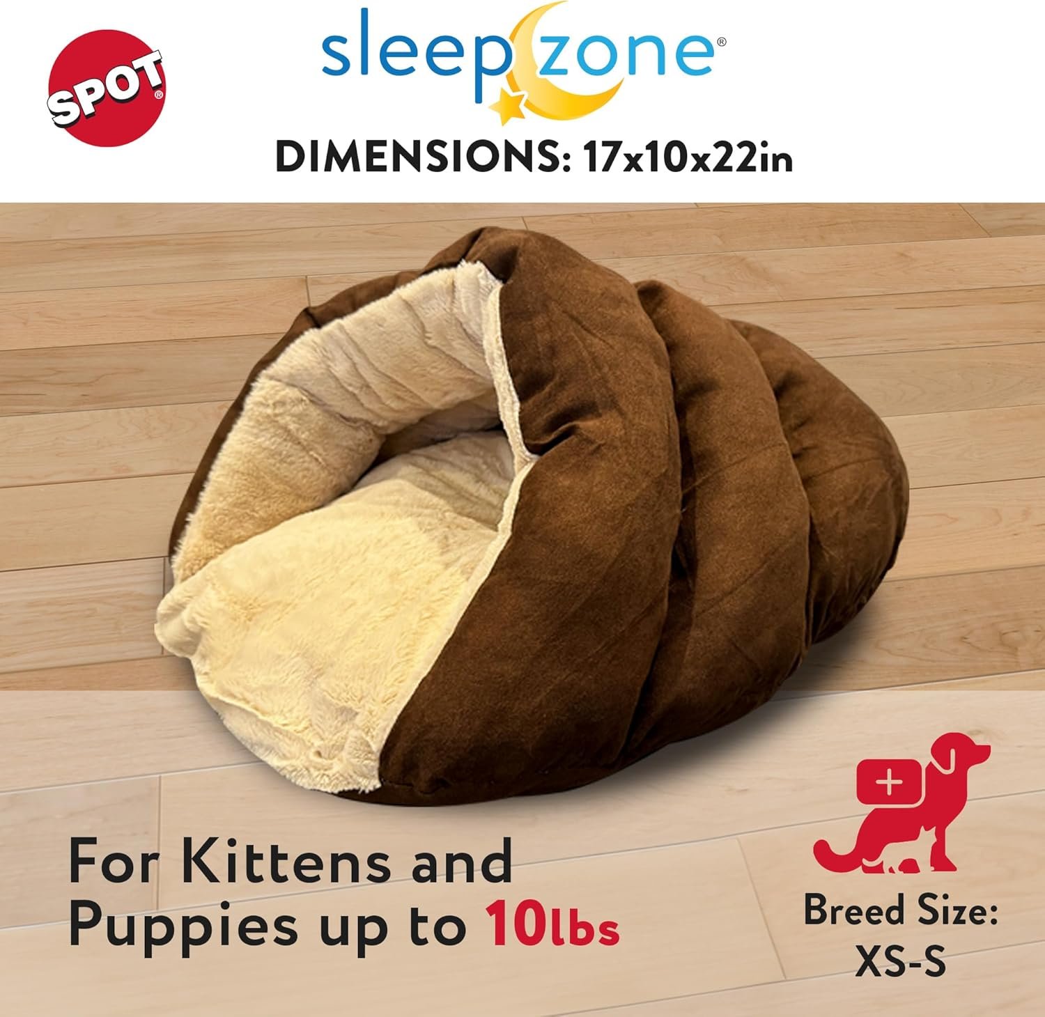 SPOT by Ethical Products Sleep Zone Cuddle Cave Pet Bed is an attractive, durable and comfortable 22” pet cave bed for cats and small dogs up to 10lbs/4kg. Made with 100% recyclable fill, the strong construction ensures your pet countless hours of comfy sleep or cuddle time. The stylish deep plush interior and ribbed faux suede finish provides your pet with a feeling of comfort, security and warmth. The filling process ensures that the fiber does not shift or clump and helps maintain the loft in the middle of the bed where it is needed to provide superior support and comfort to your pet. Machine washable for convenient care, the bed measures 22” x 17” x 10”. To select the right size bed for your pet: bed size = pet’s length + approximately 6”. Established in 1952, Ethical Products in New Jersey continues to provide pet owners and their pets with the absolute best consumer value and customer service in the pet industry while never losing sight of quality, innovation, safety, honesty and humanity.