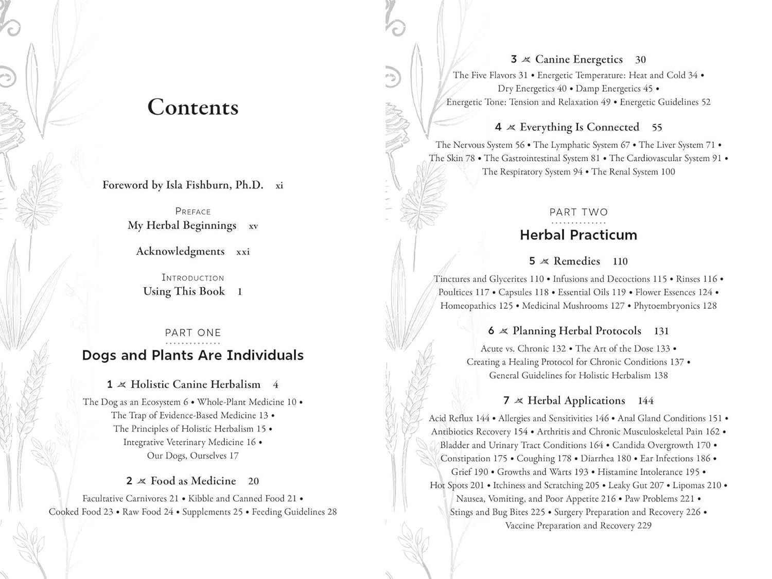 • Lays out a comprehensive materia medica of canine-specific herbs, including what conditions they are good for, their energetics, internal and external use, safe dosages, and contraindications