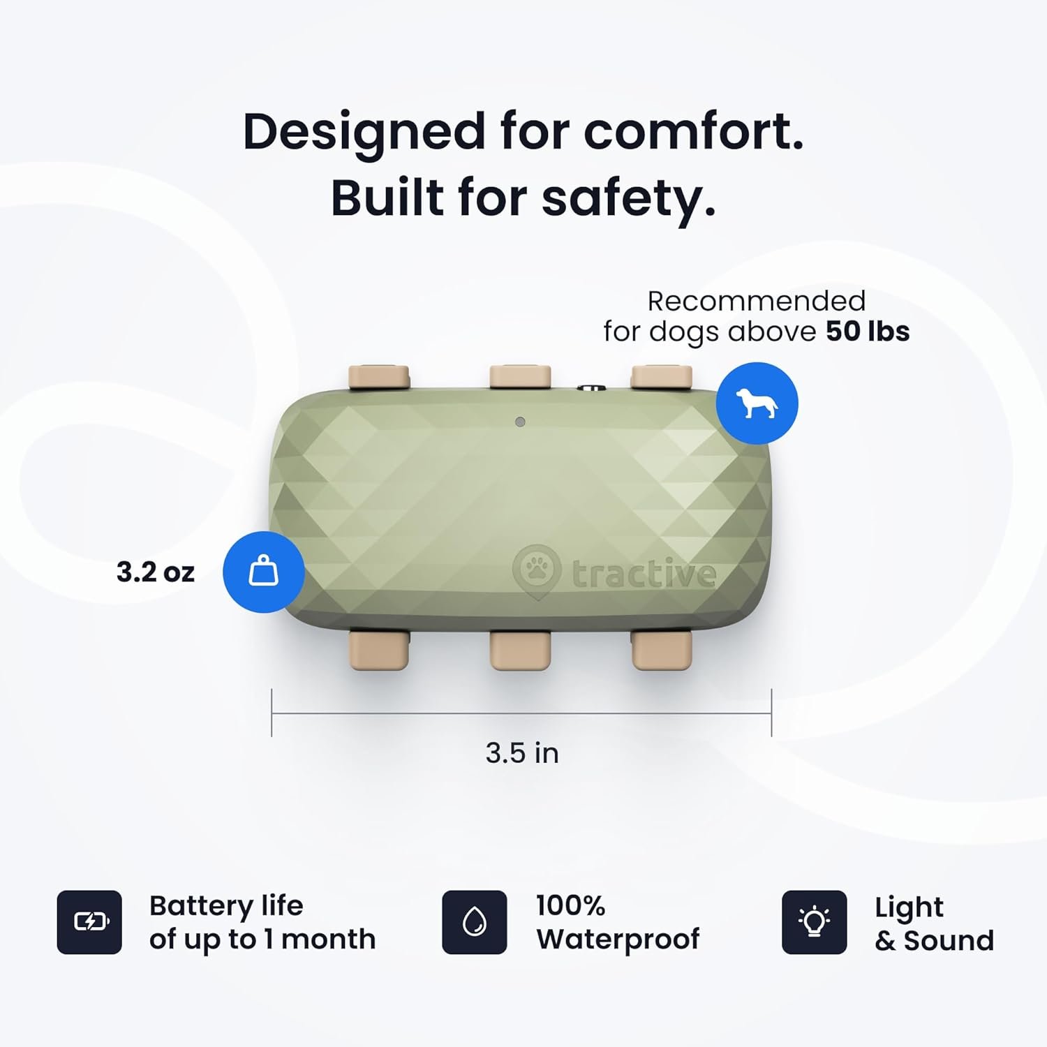 DURABLE, WATERPROOF DESIGN WITH EXTENDED BATTERY LIFE: Made for dogs 50 lbs and up, this rugged tracker is waterproof and durable enough for any environment, whether it’s mud, snow, or off-leash exploring with up to 1 month of battery life.