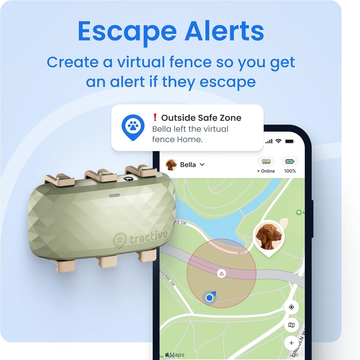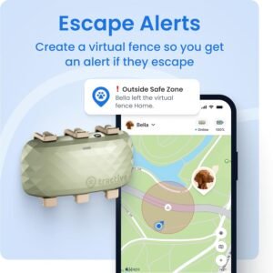 ESCAPE ALERTS & VIRTUAL FENCES: Set up safe zones and get instant alerts if your dog leaves the area. Activate live tracking to find them quickly and keep tabs on their movements in real time.