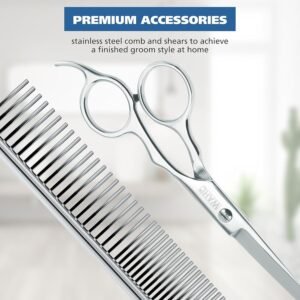 High Quality Accessories – Heavy duty stainless steel shears and detangling comb help you to complete the perfect well-groomed look for your pet, at home. Also while making it easier to groom your pet around the ears and face, where your pet may be more sensitive to noise.